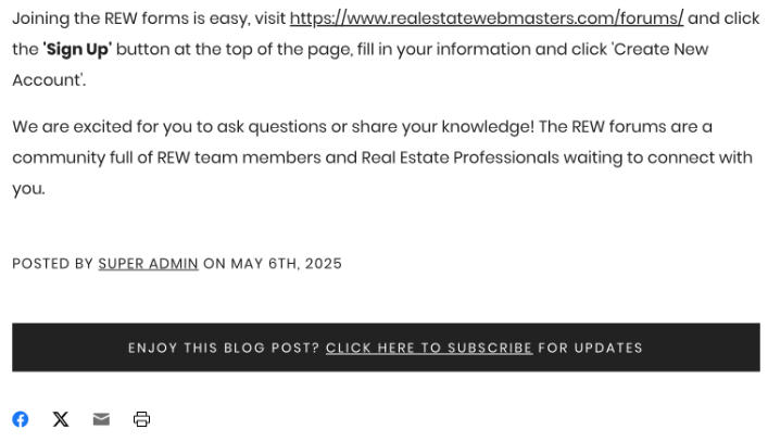 Leads submitting this form will be added to a Blog Subscriber group (the group name is yet to be defined) so that agents can easily filter them in the CRM and send them blog newsletters as desired.