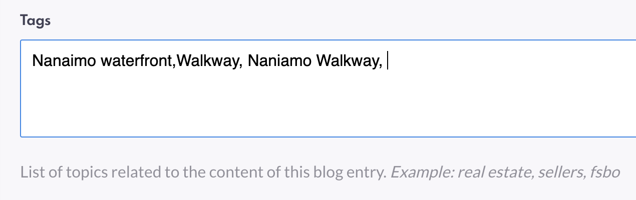 So now any listings with City = Naniamo are automatically “Tagged” with the tag Nanaimo which will then allow us to link it to any CMS pages also tagged with Nanaimo and any blog posts also tagged with Nanaimo. Make sense?