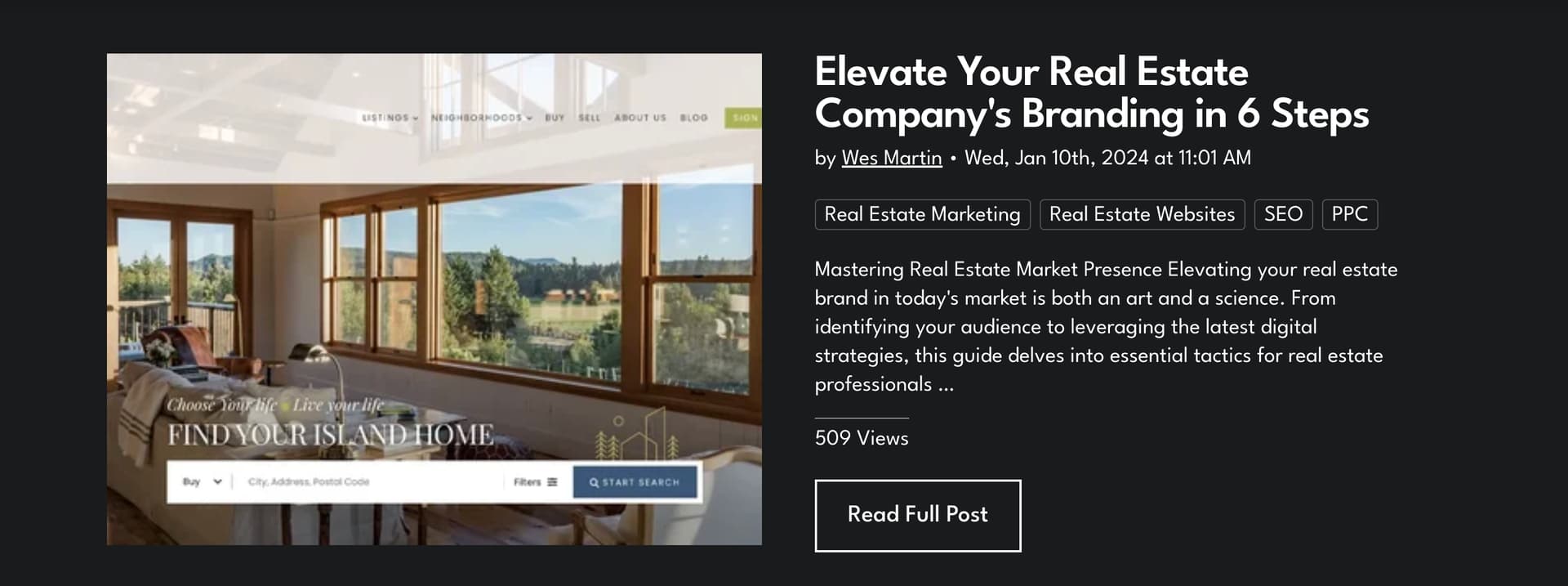 One important thing here (similar to what we do at REW main site) is the “tag cloud” needs to show on the blog posts, cms pages and listings. Not only will it mean those specific keywords are referenced on the page, but it will build authority of the tag itself which will then also pass to related pages.