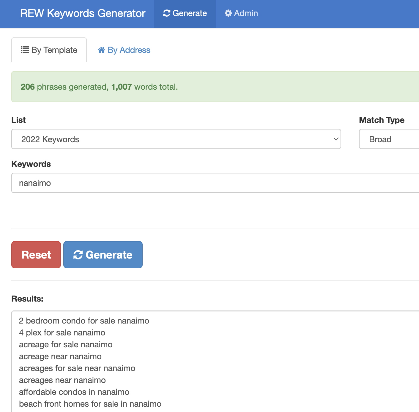 This is one of our proprietary tools that lives at REW and does some AMAZING things (like auto generates keyword lists based of the best performing keywors data from hundreds of thousands of keywors data points.