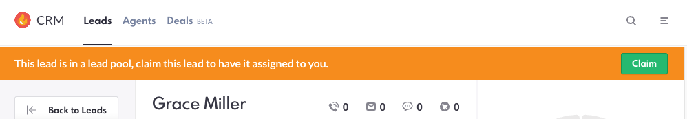 In the Lead view you are now able to see leads that have been assigned to pools. Pools is now a column that you can add in view mode. As an Agent you can search by the pool you wish to see and claim any leads in this pool. To claim a lead select the chosen lead to go to the details page and there will now be an option to claim. Once you have claimed the lead, that lead is now assigned to you.