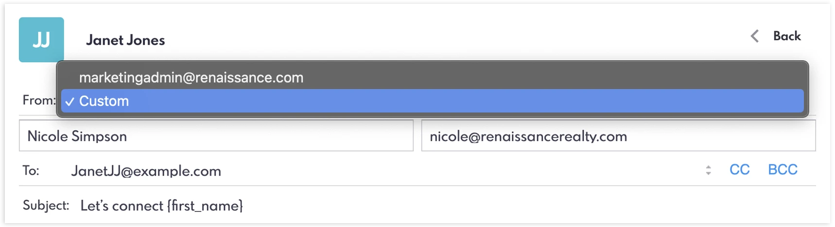 Custom Email Senders: It’s easier to send emails to unsaved contacts in REW CRM with the custom sender option.