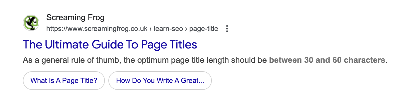 You see how Screaming Frog has “The Ultimate Guide To Page Titles” < That’s the title.