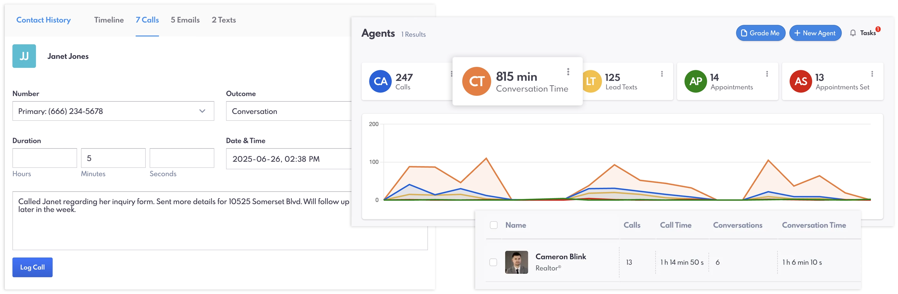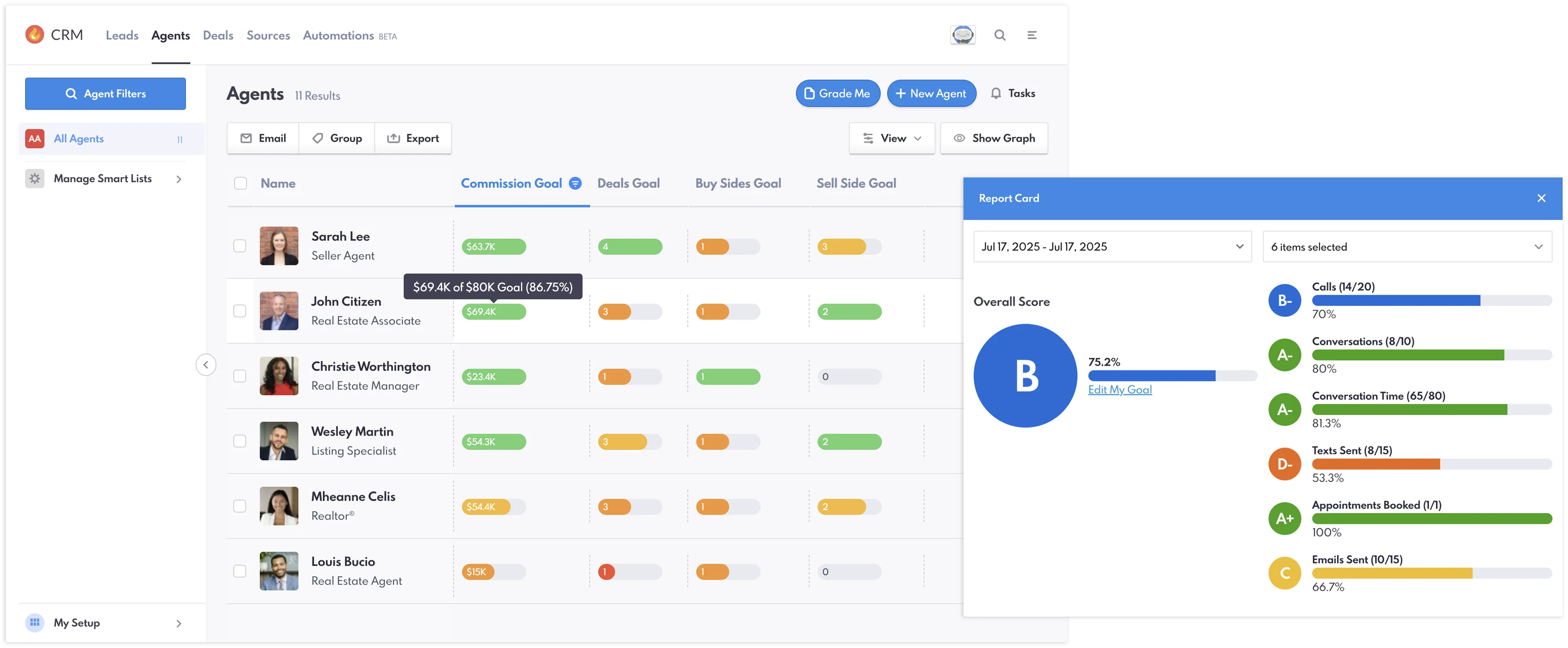 - Agent Goals and Report Scorecards: These REW CRM features help you set daily and annual goals, track your performance, and stay accountable. It’s also a valuable coaching tool for team leaders. Your agent performance is summarized in a report card format, which makes it easier to understand.