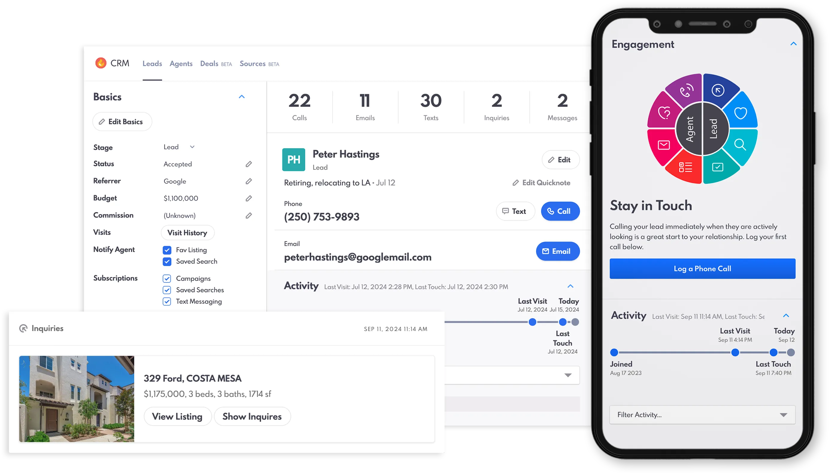- Lead Details Page Redesign: We refreshed the Lead Details page with a more mobile-friendly layout with new communication totals, collapsible panels, an activity line graph, and relationship fields.