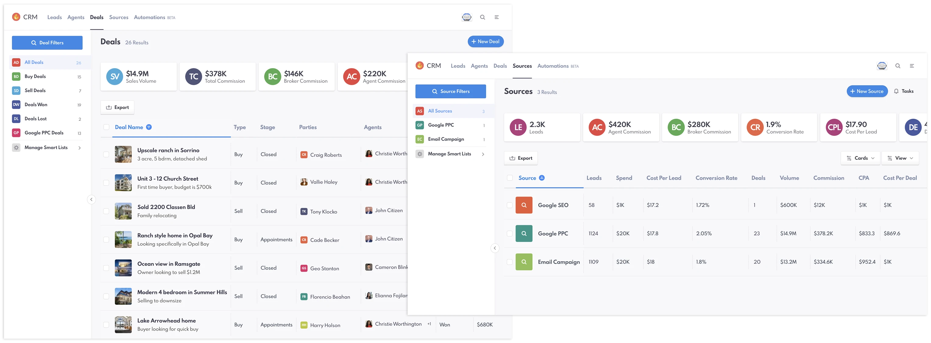 REW Deals allows you to track your deal pipeline and manage your deal transactions, while REW Sources gives you the ability to measure your marketing channels’ ROI. When you consistently log your deals and lead sources on REW CRM, you’ll get a more accurate reports and insights.