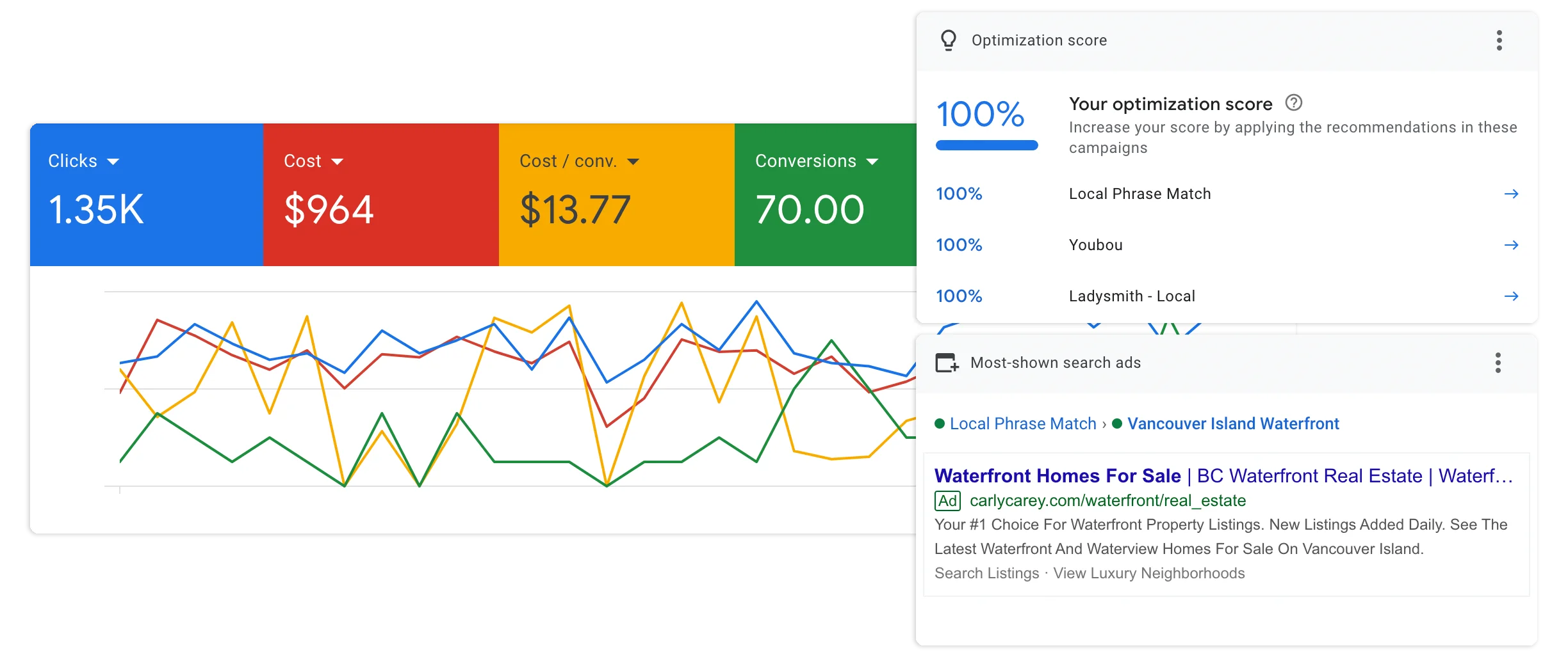 PPC can be especially effective in real estate. Imagine being the first agent or team to show up when someone searches “homes for sale in [city]” or “best real estate agent near me.” That visibility is a big advantage in capturing that lead. Plus, when you drive traffic to well-optimized landing pages, your chances of converting those clicks go way up. (We actually wrote another blog about landing pages for PPC if you want to dive deeper into that.)